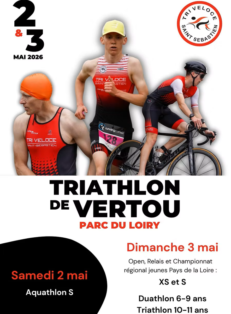 Le Tri Véloce Saint Sébastien organise son traditionnel Triathlon de Vertou le 3 mai 2026.